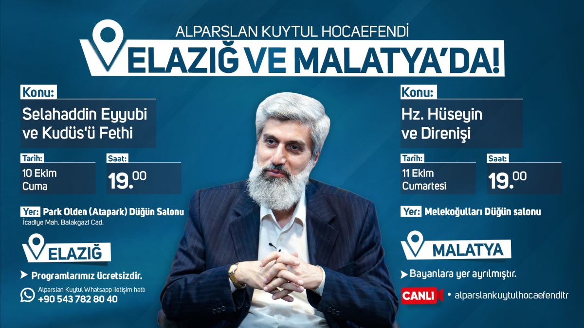 Alparslan Kuytul Hocaefendi'nin ilmi birikimi ve tecrübeleriyle, tarihi olayları günümüzle ilişkilendirerek bilgi ve bilinç kazandırdığı Elazığ ve Malatya da gerçekleşecek olan konferansalarımıza davetlisiniz.
