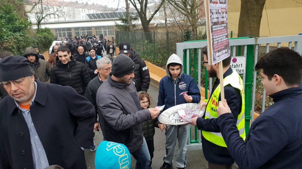 Cuma namazı çıkışında Bingöl ve Dortmun'daki Furkan gönüllüleri, cami cemaatine lokum ikram edip, 9 genci idam eden zalim Sisi Yönetiminin zulmünün son bulması için dua istedi.