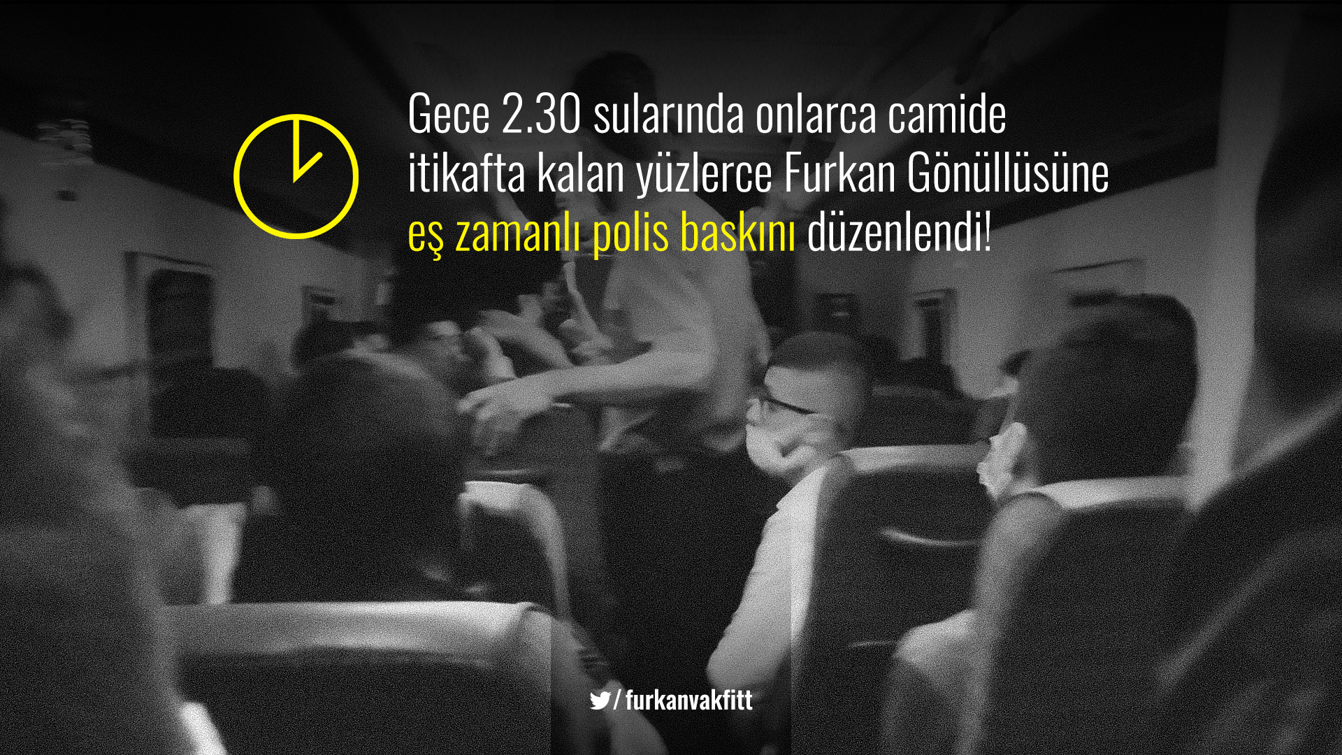 Gaziantep'te Furkan Gönüllülerinin itikafa girdiği camide müdahale edildi. Polis postallar ile girerek itikafa engel oldu.